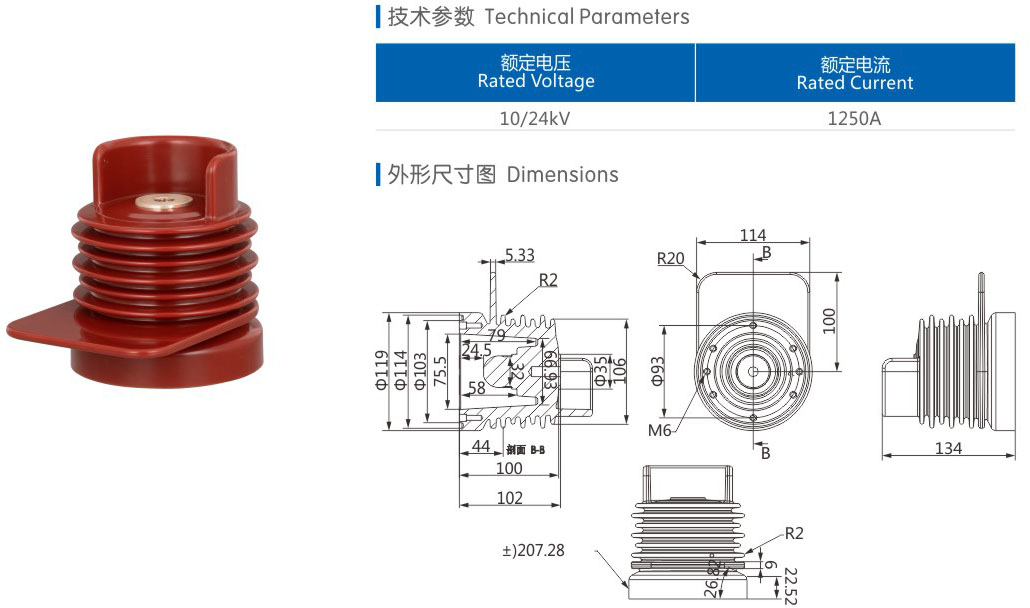 EHCK-24/1250 24kV 1250A Eco-friendly switchgear bushing