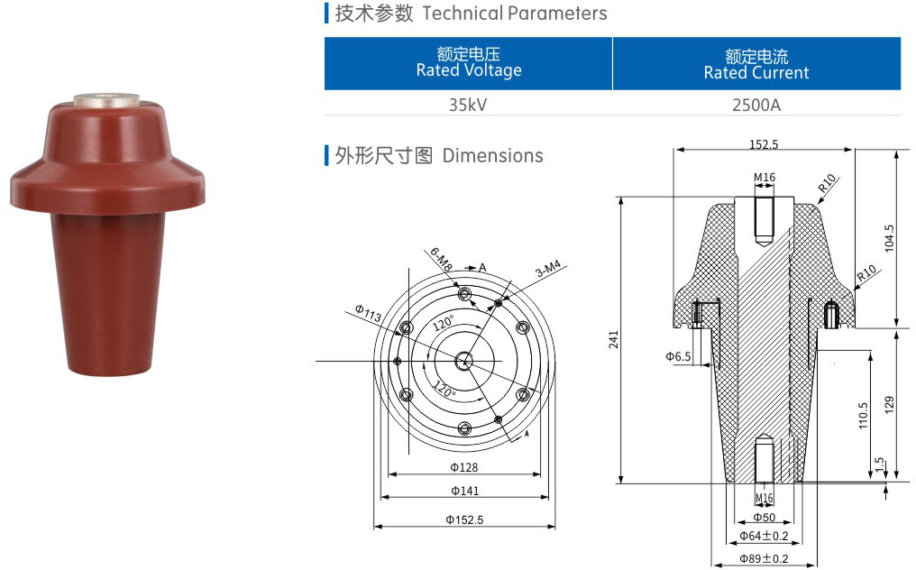 EH-35/241 35kV 2500A Type F Gas-insulated switchgear bushing