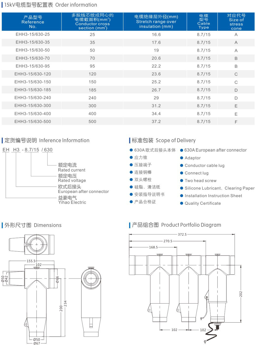 EHH3-12/630A欧式后接头