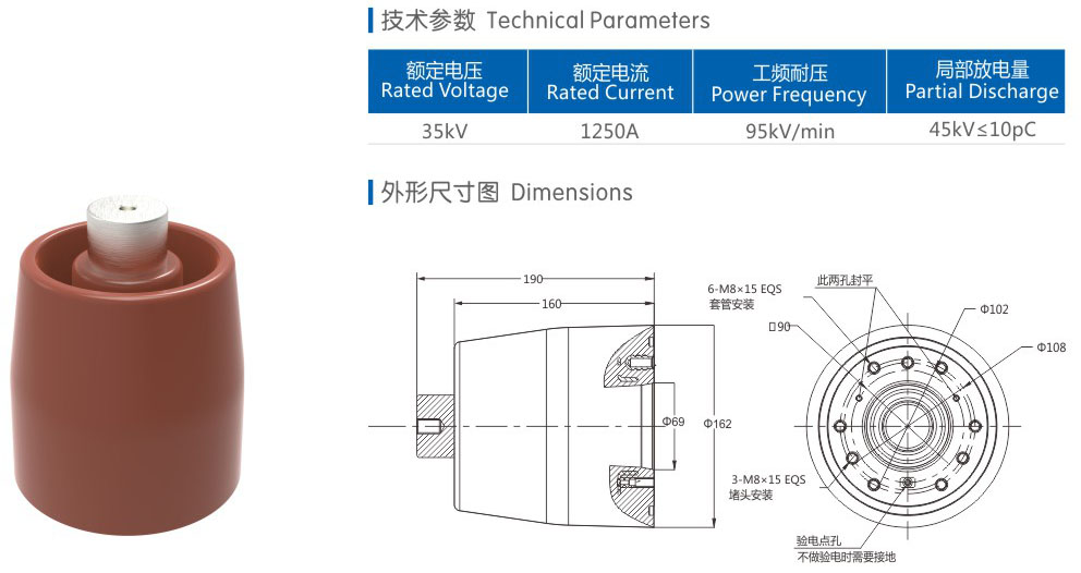 EH-35/2# Size 2 Terminal bushing(with voltage detection / neutral position) for eco-friendly switchgear